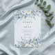 Delicate icy blue and soft white blossoms drift across this ethereal design. Sprigs of frosty greenery add a touch of winter wonder to the serene palette, evoking a tranquil and romantic atmosphere.