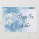 Diese elegante, moderne Kalligraphie-Save the Date-Karte mit rustikalem Blumendesign auf einem ruhigen, staubblauen Aquarell-Hintergrund, ideal für moderne rustikale Hochzeiten, Frühjahrs- oder Winterhochzeiten. Sehen Sie sich unten alle passenden Teile in der Sammlung an.Save the Date