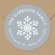 Erschwingliche, individuell bedruckte Rundaufkleber mit Rücksendeadresse personalisiert mit Ihrem Familiennamen und Ihrer Rücksendeadresse. Dieses einfache, moderne Urlaubsdesign besticht durch eine weiße Schneeflocke auf hellblau-grauem Hintergrund. Verwenden Sie die Designtools, um eine beliebige Hintergrundfarbe auszuwählen, Schriftart und Farben zu bearbeiten oder eigene Fotos hochzuladen, um Ihre eigenen Rücksendeadressen-Aufkleber, Umschlag Aufkleber oder Geschenkanhänger zu gestalten.