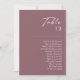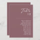 Dieser Dusty Boho | Lila Tischnummer Diagramm ist perfekt für Ihre farbenfrohe rustikale Hochzeit. Das schlichte, einzigartige moderne Design mit zeitgenössischer minimalistischer Schrift und lila Farbpalette verleiht diesem Produkt ein klassisches böhmisches Ambiente. Behalt es so, wie es ist, oder wähle es aus, um es mit Kunstwerken oder Grafiken deiner Wahl zu personalisieren. Sie können auch andere Produkte in dieser Kollektion sehen, um Ihre ganze Hochzeit zusammen zu bringen!