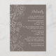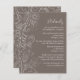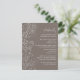Diese elegante Hochzeitsdetails-Karte kann mit wichtigen Informationen für Ihre Gäste wie Hochzeitsempfang, Hotelunterkunft, Transport, Anfahrtsbeschreibung, Kleiderbekleidung, Reiseroute, Registrierung und mehr personalisiert werden. Das Design zeichnet sich durch ein zartes blumengeschmücktes Dekor aus, mit Blume, Vögeln und Blätter auf staubbraunem grauem Hintergrund. Der Text kombiniert handgeschriebene Skript- und Serif-Schriftart für ein stilvolles und modernes Aussehen. Ideal für eine Hochzeit im Herbst im Winter oder Herbst.