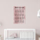 Voici une affiche élégante avec un motif rose rose et des perles blanches. Le texte "S'il vous plaît trouvez votre siège" est un lettrage manuel aux couleurs blanc et or. Il y a de quoi accueillir plus de 100 personnes. Vous pouvez supprimer les tables dont vous n’avez pas besoin et redimensionner la police de chaque table pour ajuster leur place sur l’affiche. Ou simplement se déplacer autour du pâté de maisons des tables.