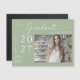 Yay ! Votre collège, lycée, collège/université, école de technologie, ou étudiant de programme d'études supérieures l'a fait et est diplômé! Célébrez l'un des moments précieux de leur vie et envoyez cette carte magnétique faire-part de graduation. L'aimant présente un style minimaliste moderne simple et élégant, avec de beaux scripts de calligraphie sur un arrière - plan vert poussiéreux et la photo du diplômé. Il suffit de customiser et de remplacer le texte et les photos dans la zone de personnalisation. Remarque : les phrases élégantes du script de calligraphie "diplômé" ainsi que les lignes et autres illustrations graphiques et éléments ne peuvent pas être modifiées, supprimées ou déplacées. Elles sont réparées.