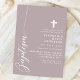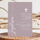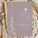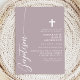 Feiern Sie den heiligen Anlass einer Taufe mit dieser eleganten, staubigen Lavendel lila Einladung. Mit einem minimalistischen Design mit modernem Drehbuch und einem delikaten Kreuz lädt diese Einladung Freunde und Familie zu diesem besonderen Ereignis ein. Die sanfte Farbe und die schlichten, sauberen Linien verleihen dem Hotel eine Touch von Eleganz und Anmut, die es zu einem so bedeutsamen Fest macht. Passen Sie die Details an, um eine einzigartige und unvergessliche Einladung für die Taufe Ihres Kindes zu schaffen.