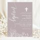 Dusty Lavender White Floral Elegant Script Taufe Einladung