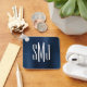 Ein einfaches dreiteiliges Monogramm-Design auf einem runden quadratischen zweiseitigen Schlüsselanhänger. Auf der Vorderseite ist das Textdesign für Ihre 3-Buchstaben-Monogramm-Anforderungen anpassbar. Der Hintergrund auf beiden Seiten ist mit einem Imitat dunkelstaubig blau und marineblau-ombre metallische Folie digitale Kunstgrafik Grafik. Wenn Sie gewollt... fügen Sie Ihr eigenes Foto oder Text zur Rückseite, um Ihren eigenen personalisierten Schlüsselanhänger zu erstellen. Der digitale Kunsteffekt druckt wie ein Foto mit einem mit Monogramm Textdesign.