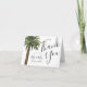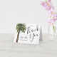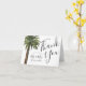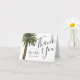 Ein Strand inspiriert Hochzeit Dankeschön Karte mit einem Aquarellbild eines Single staubige Palme. Auf der Seite sind Ihre einzigartigen Details. Auf der Rückseite sind sandbraune Streifen, die die Vorderseite ergänzen. Inside enthält Ihren eigenen speziellen Text.