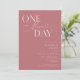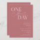 Minimalistische Hochzeitsdinner mit Typografie-Probe, die "noch einen Tag" sagt. Der Hintergrund ist staubig rosa.