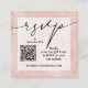 Diese modernen, rosa und goldfarbenen Hochzeitskarten sind eine einfache Möglichkeit für Ihre Gäste, auf Ihrer Hochzeitswebsite UAWG zu nehmen. Fügen Sie Ihren eigenen QR-Code und Ihre Hochzeitswebsite vorne und weitere Informationen auf der Rückseite (löschen Sie unseren Text, um den Rücken leer verlassen).
