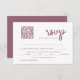 Machen Sie RSVPs mühelos mit der Dusty Pink QR Code Wedding RSVP Card. Die Vorderseite hat einen knalligen weißen Hintergrund mit weichem, rosafarbenen Schriftzeichen, einen QR-Code für schnelle digitale Antworten und Platz für Menüauswahl. Der Rücken ergänzt das Design mit einem staubigen rosa Hintergrund, der die Initialen von Braut und Bräutigam und das Hochzeitstag in elegantem weißem Text zeigt. Diese RSVP-Karte ist perfekt für moderne, romantische oder boho Hochzeiten geeignet und verbindet Stil und Komfort und sorgt für eine personalisierte und schicke Touch in Ihrem Hochzeitsgeschoss.
