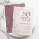Dusty rose Floral 50e Anniversaire Invitation fête. Design moderne minimaliste avec accents de dessin botanique et police de script de typographie. Carte invitation simple et tendance, parfaite pour une célébration anniversaire élégante. Peut être customisé à n'importe quel âge. Invitations Zazzle imprimées ou téléchargement instantané modèle imprimable numérique.