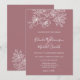 Minimalistisches Design mit weißen Kirschblüten, das die Kunst auf einem staubigen, rosa Hintergrund der Rose verbindet. Moderne botanische handgezeichnete Hochzeitseinladung mit Braut- und Bräutigam-Namen in eleganter, handgeschriebener Schrift.