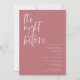 Minimalistische Hochzeitsdinner mit moderner Probe-Schriftart, in der "die Nacht vor" steht. Der Hintergrund ist staubige Rose.