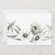 Typografie für immer in Liebe in einer extravaganten Skriptkalligraphie - hervorgehoben in einer Art und Weise, dass es fast geprägt erscheint. Minimal einzigartiger Typ für Namen und Datum: Weiße, durchsichtige Eukalyptus-Blätter graben die Vorderseite hinter dem Text auf einem staubigen Weisheitshintergrund. Auf der Rückseite ist eine Aquarellversion der anemonischen Blume und Blätter in voller Farbe auf einem weißen Hintergrund. Design von Whimsical Artwork™