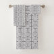 Ein geometrisches Muster weist ineinander greifende Quadrate auf, die in symmetrischer, rasterähnlicher Form angeordnet sind. Die monochrome Farbpalette in Schwarz und Weiß verleiht dem Ganzen ein modernes und modernes Ambiente, das sich ideal für diejenigen eignet, die elegante und architektonisch inspirierte Muster schätzen.