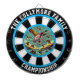 Dieses kreisförmige Design von Enten, die über Wasser fliegen und von einem kühnen Ziel gerahmt sind, bringt den Nervenkitzel der Jagd in den Innenbereich. Ideal für Grotten und Lodges, es fügt eine Touch rustikaler Eleganz in Ihren Raum hinzu.