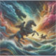 Dynamisches Duo: Stormy Horseback Adventure Dieses faszinierende Bild erfasst die Rohenergie eines Pferderlebnisses inmitten eines dramatischen Sturms. Zwei geile Pferde, von denen einer von einer furchtlosen Figur mit einem Speer geritten ist, laden sich durch ein wirbelndes Meer aus blauen, weißen und rosa Wolken. Das zweite Pferd, das scheinbar aus den Wellen hervorgeht, trägt zum Gefühl von Bewegung und Aufregung bei. Blitze erhellen den Himmel und schaffen einen atemberaubenden Kontrast zwischen Licht und Dunkelheit. Dieses lebendige Kunstwerk ist perfekt für alle, die Pferde, Natur oder Abenteuer Lieben. Mit AI erstellte Bilder.
