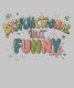 A vibrant, hand-lettered design featuring the phrase "Dysfunctional but Funny." This piece utilizes a muted retro color palette of sage green, dusty rose, and mustard yellow. The bubbly, 3D typography is surrounded by playful doodles, stars, and splatters, capturing a sense of charming chaos. Perfect for those who embrace their quirks with a sense of humor.