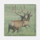 Bull Elk in Velvet Magnet. Wunderschönes Bullenelch in Sommerkleidung und Samtantlern, die Lücke zwischen den Punkten auf dem größeren Stier gibt dem einen Antler ein fast karibisches Aussehen.