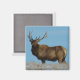 Bull Elk Sky Lined Magnet. Ein großer, schöner Bullenelch besichtigt seine Umgebung von einem Hügel auf den südlichen Alberta-Prärien unter einem perfekten blauen Winterhimmel.