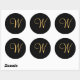 K initial de couleur or sur autocollant monogramme noir.