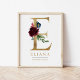 E Letter Monogram Name Marsala Floral Kinderzimmer Poster