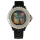 Uhr, Vintage Männeruhr mit schwarzem Lederarmband
