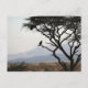 Ein Single-Adleruhu liegt in einem Akazienbaum über den Hügeln von Sambura, Kenia