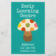 Ein niedliches, modernes Business Flyer Design niedliche Pilz-Illustration . Dies wäre geeignet für ein Early Learning Center, eine Vorschule oder ein Tagespflege-Unternehmen. Der Text ist vollständig an Ihre Bedürfnisse anpassbar. Farbenfrohe, schlichte und positive Gestaltung, geeignet für Kinder.