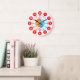 Colorful kids graphic wall clock color coded to help assist your child to read a clock. This colorful teaching aid inklusive Minuten and hours and to making child's play of telling the time. Exklusivdesigned by Sarah Trett. Great addiert to a child's bedroom who is just learning to read a clock face.