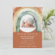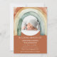 Honor the memory of your loved one with this serene and comforting rainbow funeral announcement. The soft watercolor rainbow design, featuring warm earth tones, cradles a cherished photo of your baby. This invitation serves as a gentle reminder of hope and peace during a difficult time, offering solace to family and friends as you commemorate a life beautifully lived. The back of the announcement provides space for additional details about the service or reception, ensuring all necessary information is shared with loved ones..