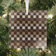 A checkerboard pattern with alternating dark brown, light brown, and beige squares, creating a sense of rhythm and visual depth.