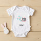 Personalized Baby Bodysuit with Easter theme and blue bunny.