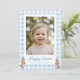 Easter Bunny Blue Gingham Photo Feiertagskarte
