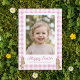 Easter Bunny Pink Gingham Photo Feiertagskarte