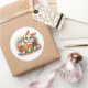 Round sticker is shown with a cute Easter bunny art print.