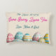 Easter Bunny with Eggs make special your own pillow. Generative content images may be changed. Humor Greeting on the back of the pillow says, "Some Bunny Loves You", "Mom & Dad" or you can write the parents' name and the date.