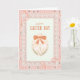 Hand illustrated Ester Egg with white flowers and leaves and a coral coloured ribbon with patterned fabric and lace frame and ribbon written inside reads"wishing you and your family have a blessed Easter" which is completely customisable for you to add you to add your own personal message. As a small mother daughter duo we sincerely appreciate every click, like & follow, if you have a moment and like what you see, please click the Like bottom, it really does help.