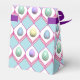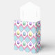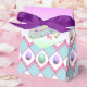 Easter egg pattern with Happy Easter text on the front flap. Pastel stripes and bunnies decorate the Happy Easter text.