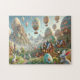This magical artwork "Fantasy Egg World: A Whimsical Easter Wonderland of Cheerful Bunnies and Magical Landscapes" jigsaw puzzle invites you into an extraordinary world where everything is inspired by Easter eggs. In this whimsical wonderland, egg-shaped houses with intricate designs create a vibrant and cozy village, while egg-shaped hot air balloons float gracefully through the sky. Towering egg-shaped mountains provide a stunning backdrop, and tiny cheerful bunnies roam, play, and interact joyfully in this enchanted setting. Bright pastel colors, lush greenery, and blooming flowers fill the scene with a sense of warmth and celebration, embodying the joy of Easter and the magic of imagination. This design is a perfect jigsaw puzzle, offering a delightful journey into a fantastical realm that combines the charm of Easter traditions with a world of endless creativity.