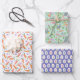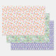 Wrapping paper sets of three sheets, perfect for Easter, with three patterns: carrots and purple flowers; colorful Easter eggs with a folk design, and lots of bunnies and chicks among tulips, Easter eggs, and Easter baskets.