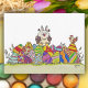 Das Easterowl sitzt auf einem Haufen von bunten Ostereiern.