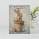 A little boy Easter bunny sitting in a flower pot.
