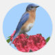 Einige sichere Anzeichen für den Frühling, ein wunderschöner männlicher Eastern Bluebird und schöne Camellia-Blume.