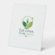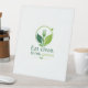 A playful, hand-drawn logo featuring a fork and leaves, symbolizing healthy and eco-friendly living. The handwritten style and vibrant green tones give it a friendly, fresh, and energetic feel.