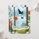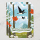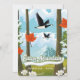 Eaton Mountain Skowhegan, Maine-Cartoon Landschaft mit Gänsen über einem Berg und Bäumen fliegen.