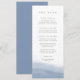 Dieses schicke Hochzeitsmenü an der Küste passt zu unserer Ebb Tide Kollektion, die mit einer reinen Aquarellwäsche aus staubigen Perwinkelblau am unteren Ende des Raumes und dem eigenen Text in weichem, grauem Schriftzeichen versehen ist. Anpassen mit bis zu vier Kursen mithilfe der Vorlagenfelder.