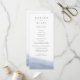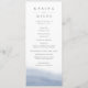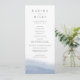 Dieses schicke Hochzeitsprogramm an der Küste passt zu unserer Ebb Tide Kollektion, die mit einer reinen Aquarellwäsche aus staubigen Perwinkelblau am Boden und dem eigenen Text in sanften grauen Schriftzeichen versehen ist. Passen Sie die Vorderseite mit Ihrem Zeremoniell-Programm an und fügen Sie Ihre Hochzeitsfeier auf den Rücken.