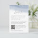 Diese schlichte und schicke Kapselkarte mit den Details der Hochzeitsfeier, die mit der Ebb Tide Hochzeitssuite abgestimmt wurde, zeichnet sich durch eine graue Schrift auf weißem Hintergrund aus, die oben mit einem Waschen der Aquarellfarbe an der Küste versehen ist. Passen Sie den QR-Code an, damit die Gäste leicht scannen und UAWG durchführen können. Ein elegantes und zeitloses Aussehen für Ihre Sommerhochzeit.