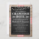 Ce design de style rustique dispose d'un arrière - plan en bois avec ruban rouge et blanc. En plus de cela est une texture de tableau noir avec serif blanc et écriture manuscrite police qui est tout personnalisable à votre événement, que ce soit une ébullition de langouste, homard, fruits de mer ou de poisson ébullition. Célébrez votre fiançailles, anniversaire, remise de diplômes ou tout autre événement avec cette invitation !